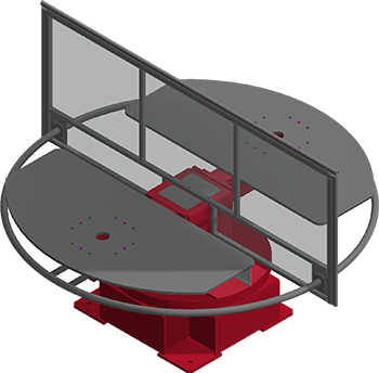 Der automatische Arbeitsbereichwechsel eines motorischen Positionierers hat den Vorteil, dass der Bediener für die Drehbewegung keine Zeit und Kraft aufwenden muss. Nachteile sind der größere Platzbedarf und höhere Kosten durch die notwendigen Sicherheitseinrichtungen wie Lichtgitter, Trittmatten usw. Die Taktzeit erhöht sich durch „weite Wege“, die zusätzlich den Bediener belasten, besonders bei kurzen Arbeitszyklen. | Der manuelle Arbeitsbereichwechsel eines Positionierers macht die aufwändigen Sicherheitseinrichtungen überflüssig. Der Bediener fährt die Drehbewegung des Positionierers selbst durch. Vorteile sind „kurze Wege“, der Bediener bewegt sich unmittelbar vor dem Positionierer. Kleinerer Platzbedarf, kürzere Taktzeiten und geringere Beschaffungskosten. Der große Nachteil dieses Systems, der Bediener ist durch das ständige Drehen des Positionierers großer körperlicher Belastung ausgesetzt. | ||